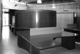 Cet ensemble de mobiliers réalisé en MDF vernis/teinté a été dessiné pour les locaux de la Communauté de Communes de Bolbec.