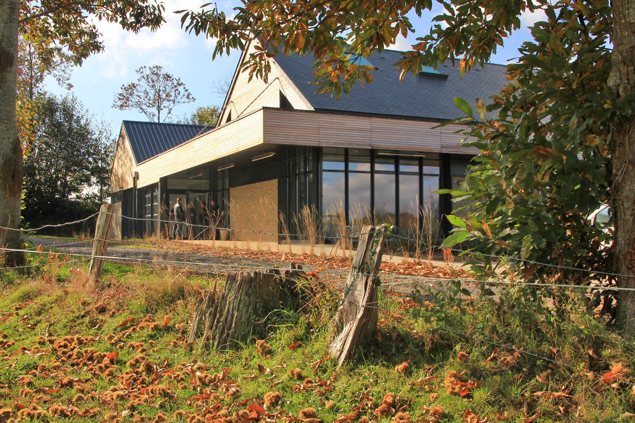 - le principal, dont la hauteur est volontairement plus élevée, abrite la salle principale du bâtiment qui s’ouvre généreuse sur la vallée de l’Airon,
